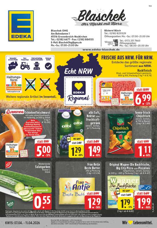 Qualität, Frische und exzellenter Kundenservice sind die herausragenden Merkmale des EDEKA-Blaschek-Marktes. Unser kompetentes Team arbeitet täglich daran, unseren Kunden all Ihre Wünsche zu erfüllen.